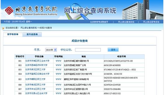 通过对“招生简章”、“答考生问”、“招生院校查询”、“招生专业查询”、“报名地点查询”的阅读了解以下内容: