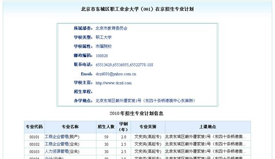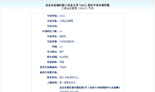 在以上查询页面左边是招生专业目录,点击“专升本”、“高起本”或“高起专”可以查看所有在京招生学校专业信息。