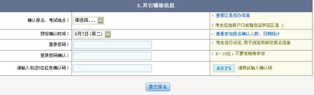 选择进行报名确认的时间、地点。考生选择在哪个区县进行报名确认就将在哪个区县考试。