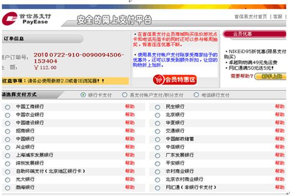 点击[确定]后,进入首信易网上支付平台,如下图: